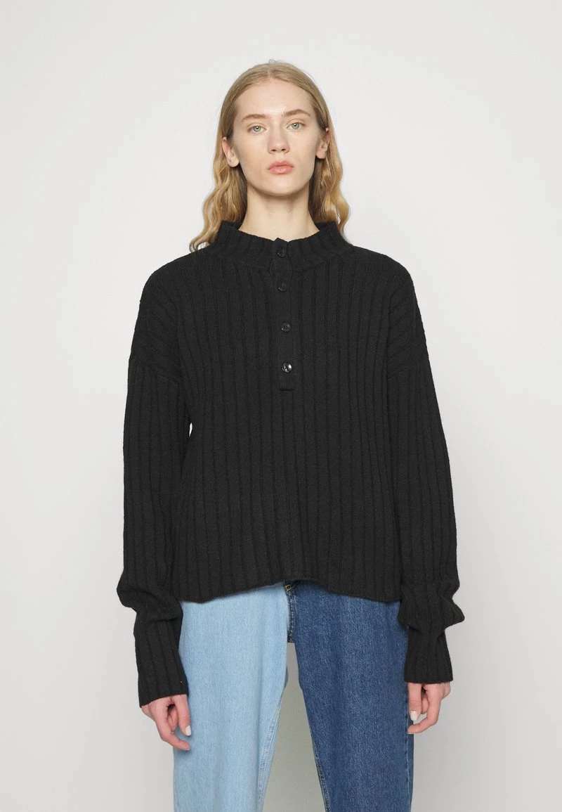 Nly by Nelly BUTTON DETAILED Strickpullover – Schwarz, Damen | Modischer Strickpullover mit Knopfdetails