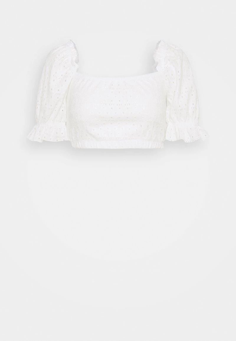 Nly by Nelly EMBROIDERED CROPPED Bluse – Weiß – Damen | Stilvolle Stickerei | Moderne Cropped-Optik