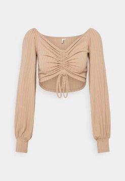 Nly by Nelly LUXURIOUS DRAWSTRING Langarmshirt – Beige Damen | Elegantes Langarmshirt mit Kordelzug